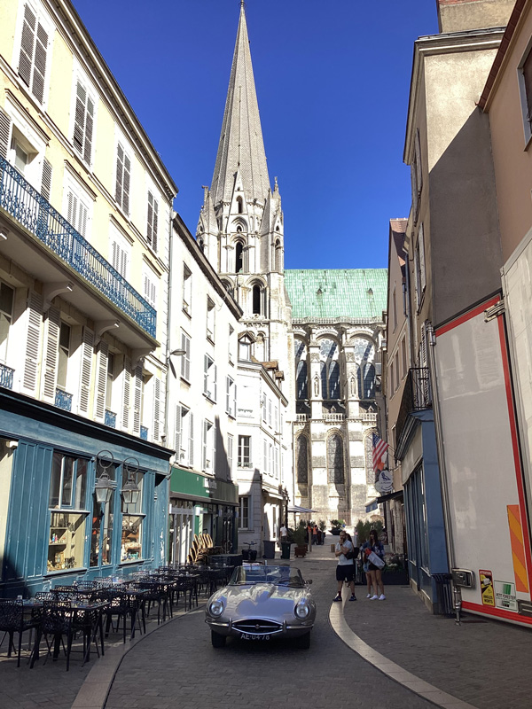 Om van het tot hotel omgebouwde klooster Chartres weer uit te komen ging niet makkelijk. Op de achtergrond de kathedraal waar het allemaal om ging, uiteraard.