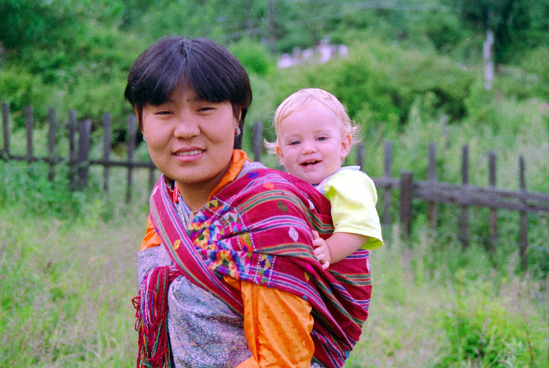 Naast Laura staat Pema, onze hulp en nanny toen we in Bhutan woonden.