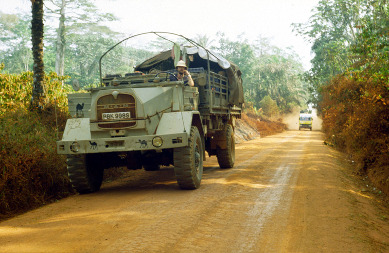 Hoeveel terug in de tijd is dit: Minke (22 jaar oud) aan het stuur van een MAN zes cilinder diesel met de vlam in de pijp daverend over de zuid-Sudanese woestijn op weg naar Juba.